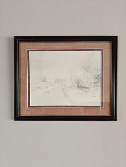 Old drawing "Alte Schule Heddesdorf" | Framed | With artist's mark & gallery stamp Neuwied