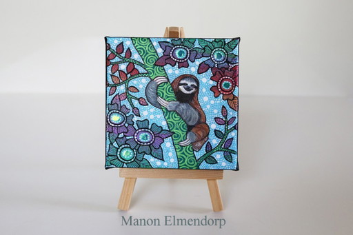 Unique Hand-painted Painting with Donkey Fox Flowers