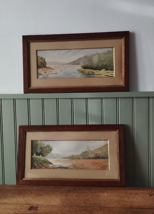 Watercolor painting of a duck | Dark brown frame - Vintage lookWatercolor painting of a duck | Dark brown frame - Vintage look