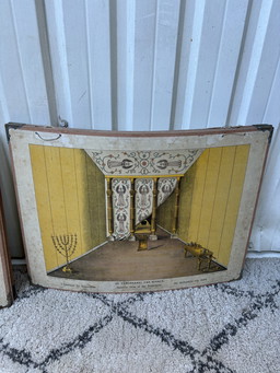Sortez Du Cadre" low-relief sign, wood and oxidized copper