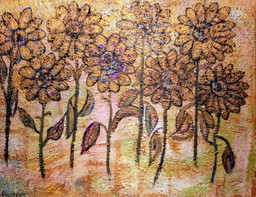 T.van Steenbergen Happy Golden Flowers 70 x 109 cm