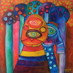 Javier Griekss, Man With Apple - Mixed Technique 60x70 cm