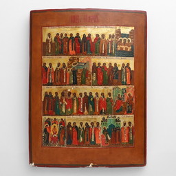 19th Century Religious Russian Menaion Icon, Saints of the Month of March19th Century Religious Russian Menaion Icon, Saints of the Month of March