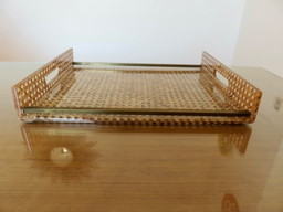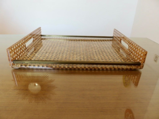 "CHRISTIAN DIOR" tray, France, circa 1970, plexiglass, lucite with caning inclusions