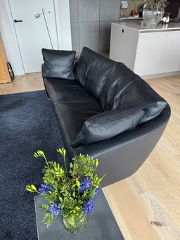 2 black leather designer sofas by FSM (De Sede) model Velas
