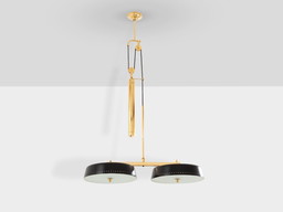 Gaetano Sciolari for Stilnovo painted metal brass pulley chandelier 1950