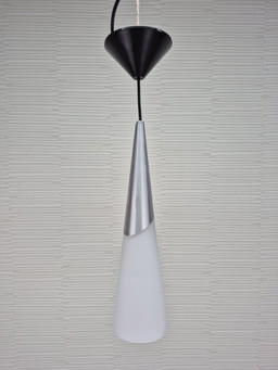 Hala Zeist - hanglamp - rvs - gesatineerd glas - 80's