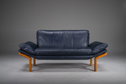 Danish Teak and Navy Blue Leather 2-Seater Sofa from Komfort, 1970s