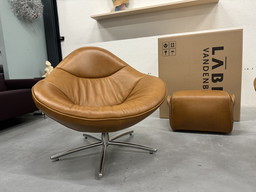 Label Vandenberg Hidde Soft Swivel chair with Gin pouf Bovino natural leather