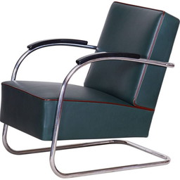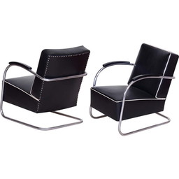 Schwarzes Ledersofa von Vichr a Spol, 1930er Jahre