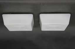 1970er Paar quadratische Milchglas-Deckenleuchten, Tschechoslowakei