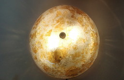 Seltene, massive Deckenleuchte im Stil der 70er Jahre mit Blattgold-Effekt (wahrscheinlich Muranoglas).
