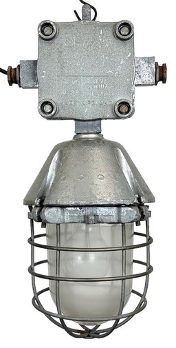 Explosionsgeschützte Lampe aus grauem Aluminiumguss mit emailliertem Schirm, 1970er Jahre