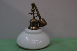 Kronleuchter aus Messing mit schönen Milchglasschirmen.