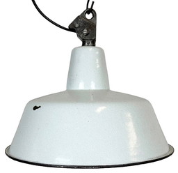 Industrielle weiße Emaille-Fabrik-Hängeleuchte, 1960er Jahre