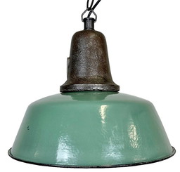 Große, industrielle Fabriklampe aus grauem Emaille mit gusseisernem Aufsatz, 1960er Jahre