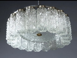 60er 70er Jahre Kronleuchter Deckenlampe von Doria Leuchten Germany Ice Glas