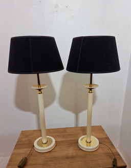 Paar verstellbare Vintage-Wandleuchten, Messing und beiger Stoff, Frankreich, 1970