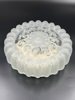Industrielle weiße Porzellan-Käfigwandleuchte mit geriffeltem Glas, 1970er Jahre