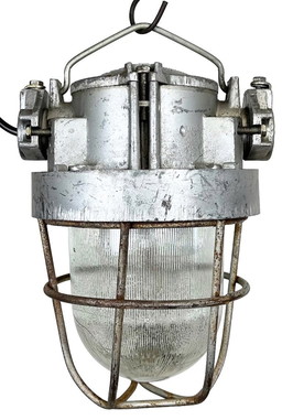 Graue, explosionsgeschützte Industrielampe aus Aluminiumguss, 1970er Jahre
