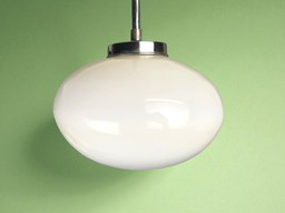 Ovale Art Deco Hängelampe aus weißem OpalglasOvale Art Deco Hängelampe aus weißem Opalglas