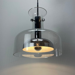 Peill & Putzler Futura Pendelleuchte - gewelltes Glas und Chrom, 1970 Medium