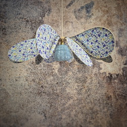 Hängeleuchte Blume mit 12 Blütenblättern aus Rattan, Blumenstoff und Glaskugel von Clichy