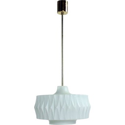 Hängeleuchte aus weißem Glas und Messing, Tschechoslowakei 1960