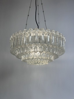 große und schwere kalmar franken mid century hängelampe eisglaslampe