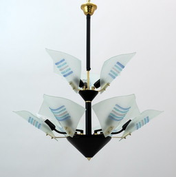 Moderner italienischer Kronleuchter mit Segeln aus Muranoglas, 1989Moderner italienischer Kronleuchter mit Segeln aus Muranoglas, 1989