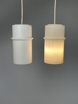 2 X Peill und Putzler Opalglas Pendelleuchten 1960'S