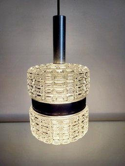 Vintage-Pendelleuchte, Chrom-Finish und Glas-Lampenschirm, aus den 1960er Jahren