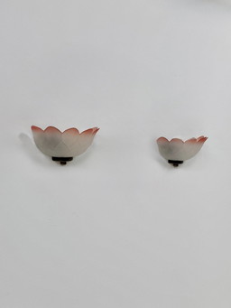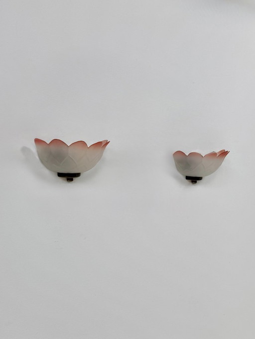 Set (2) Vintage Art-Deco Pendelleuchten aus rosafarbenem Opalglas.