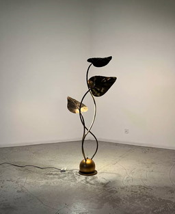 Stehlampe mit Blumen / Sonnenblumen, Metall lackiert, Italien um 1970