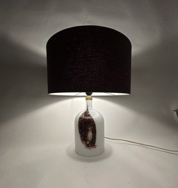 Keramik-Tischlampe von Walter Becht mit neuem handgefertigten Lampenschirm mit Grafikdruck
