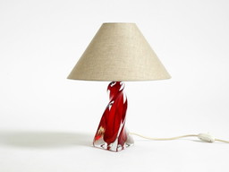 Wunderschöne, schwere Tischleuchte im Mid-Century-Modern-Stil aus massivem Kristallglas in Rot und TransparentWunderschöne, schwere Tischleuchte im Mid-Century-Modern-Stil aus massivem Kristallglas in Rot und Transparent