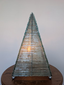 Französische, pyramidenförmige Tischleuchte aus Glas, 1970er Jahre