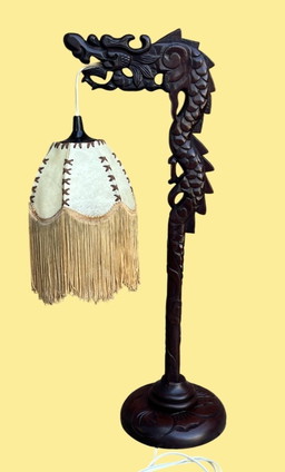 Antike chinesische Drachenlampe aus Mahagoni (1920-1930)Antike chinesische Drachenlampe aus Mahagoni (1920-1930)