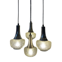 Vintage Doria Leuchten Hängelampe, Eisglasröhren 60er/70er Jahre