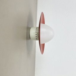 Rote runde 20 cm Stilnovo Metall Opalglas Wandleuchte, Italien, 1960er Jahre