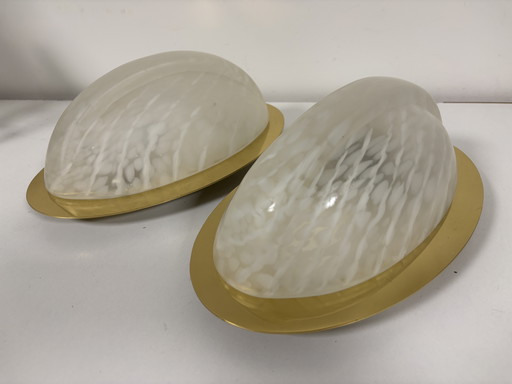 Paar Limburg-Wandleuchten aus Opalglas und Messing, Deutschland, 1970