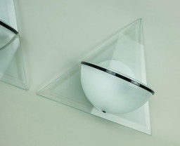 2x holländisch modern Glas & Stahl dreieckige Wandleuchten