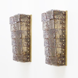 Ein Paar Muranoglas "Poliedri" Wandleuchter mit Gold 24 Metallrahmen