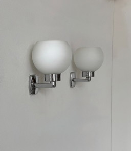 Paar Vintage-Wandleuchten, Chrom und Opalglas, Frankreich, 1970