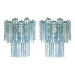 Zeitgenössische hellblaue „Tronchi“-Wandleuchten aus Muranoglas im Venini-Stil – ein Paar