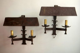 Paar brutalistische Wandleuchten aus patiniertem Eisen aus der Mid-Century-Zeit, 1950-60er Jahre