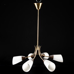 Vintage Pendellampe 1960er Metall opaline Louis Kalff Stil retro