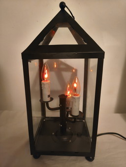 Klassische Laternen-Tischleuchte mit 3 Kerzenfassungen – schwarzes Metall und Glas