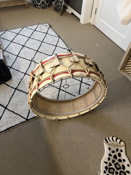 Großer Lampenschirm, gefertigt aus einer alten TrommelGroßer Lampenschirm, gefertigt aus einer alten Trommel