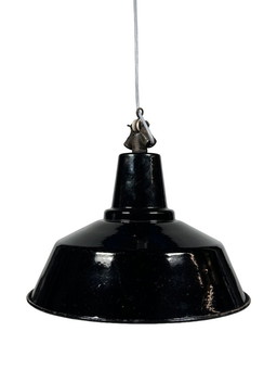 Industrielle Fabriklampe aus schwarzer Emaille mit Gusseisenplatte, 1950erIndustrielle Fabriklampe aus schwarzer Emaille mit Gusseisenplatte, 1950er
